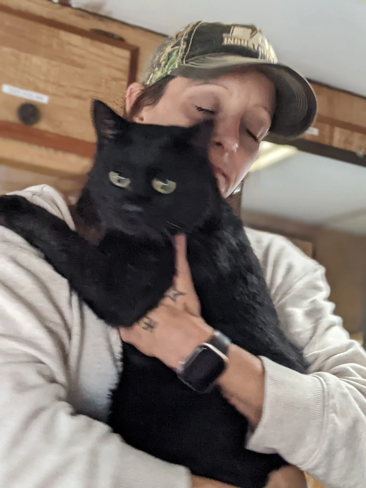 Sept, 24, 2025: The TBC Staff & Volunteers had the joy of reuniting Buddy, (who ran out of his burning house), with his family!! When we are able to reunite a family again with their lost fur-babies we not ONLY are beaming from ear to ear with the families, but ALL of us in TBC are reminded WHY we do what we do in animal rescue work!! This picture says it all doesn't it?? PICTURED: Buddy & Heather reunited with her Dad's beloved Buddy inside the TBC Command Post!! Many thanks to TBC's Staff, Volunteers & Friends: Jenn, Janice Fischer, Earl Fischer, KmeeSue, & Lucy DeFrank!